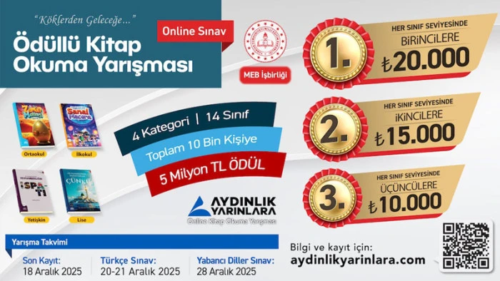 Türkiye’nin ve dünyanın dört bir yanından yüzbinlerce kişinin katıldığı “Aydınlık Yarınlara Kitap Okuma Yarışması” bu yıl da büyük bir heyecanla başladı. Yarışma, öğrencilerde okuma sevgisini artırmayı, millî ve manevî değerlere bağlı, bilinçli nesiller yetiştirmeyi hedefliyor.