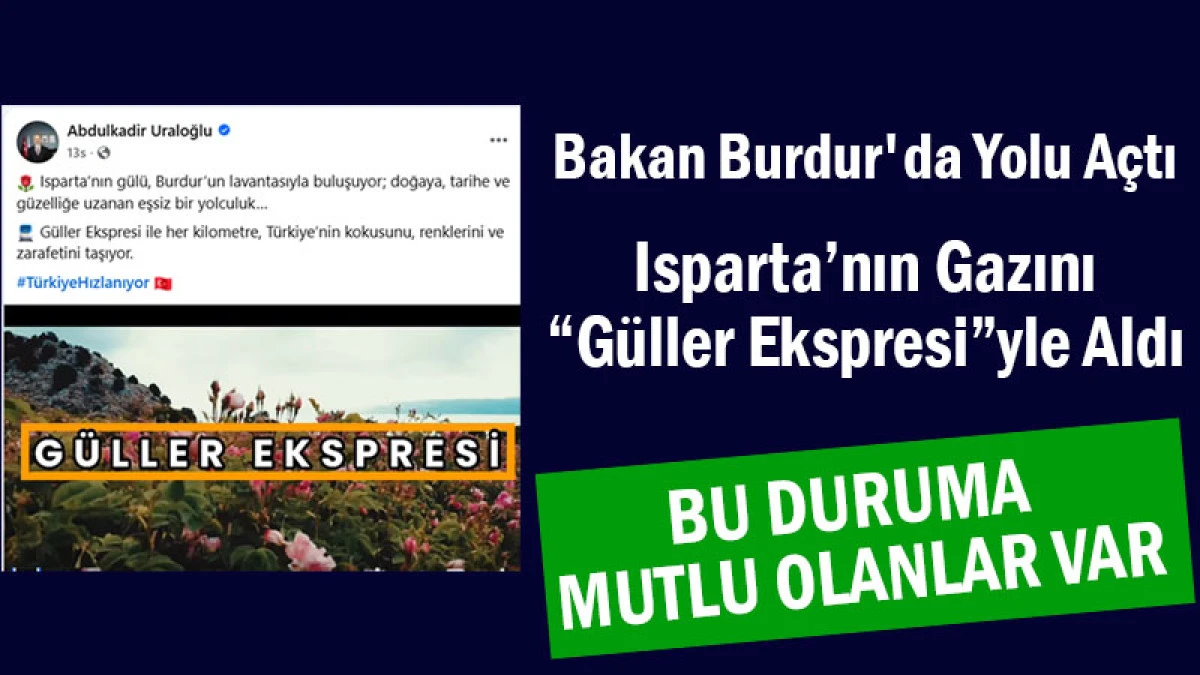 Isparta’da uzun süredir gündemde olan bu projelere ilişkin herhangi bir açıklama yapılmazken, Bakan Uraloğlu sosyal medya hesabından yaptığı paylaşımda ise yalnızca “Güller Ekspresi”ne vurgu yaptı.