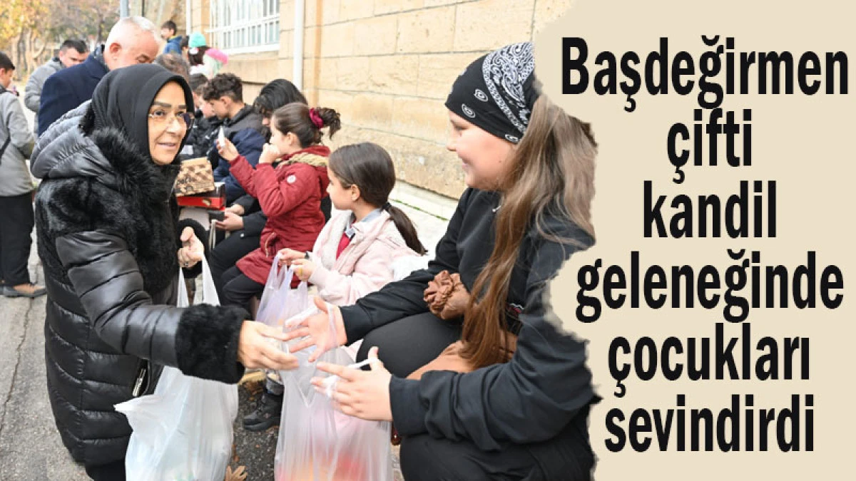 Başdeğirmen çifti, kandil geleneğinde çocukları sevindirdi