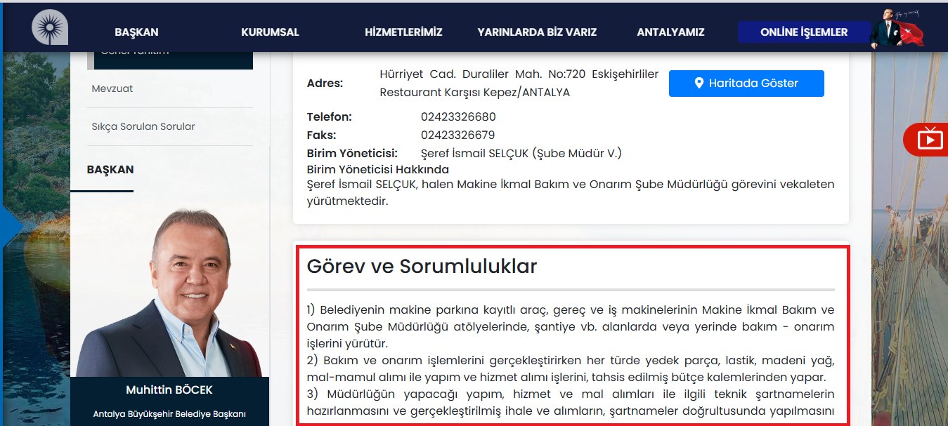 Antalya Büyükşehir Belediyesi’nde Kırsal Hizmetler Dairesi Başkanlığı bünyesinde kurulan Makine İkmal, Bakım ve Onarım Şube Müdürlüğü, mevzuat gereği kurum bünyesindeki iş makinesi ev araçların bakım ve onarımını yapmakla görevli. Ancak bu konuda hedefler konulmasına rağmen, Kepez-Duraliler Mahallesi’nde Karaman Çayı’nın kıyısındaki ek hizmet binasında yer alan ilgili birimin 2023 ve 2024 yıllarında hiçbir işlem yapmadığı ortaya çıktı.