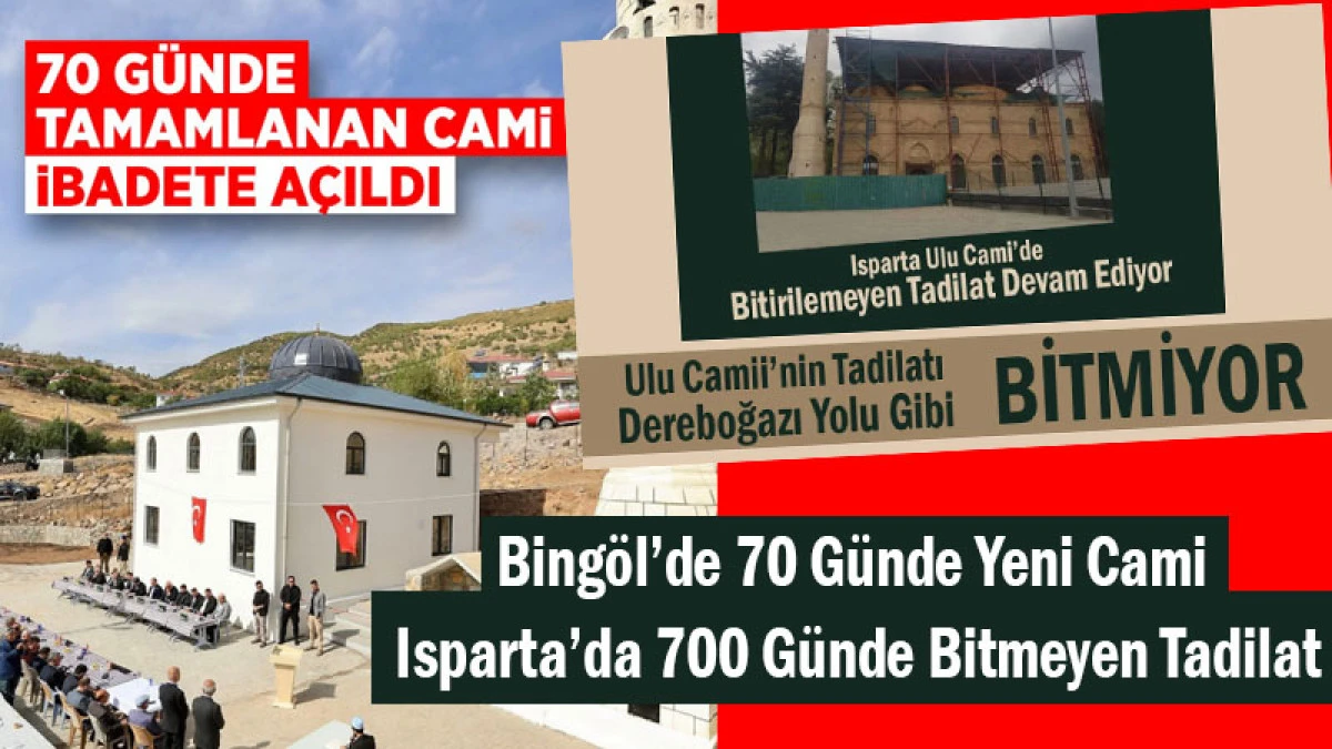 Bingöl'de 70 günde yeni cami yapıldı, Isparta'da Ulu Camii’nin tadilatı 700 günde bitirilemedi.