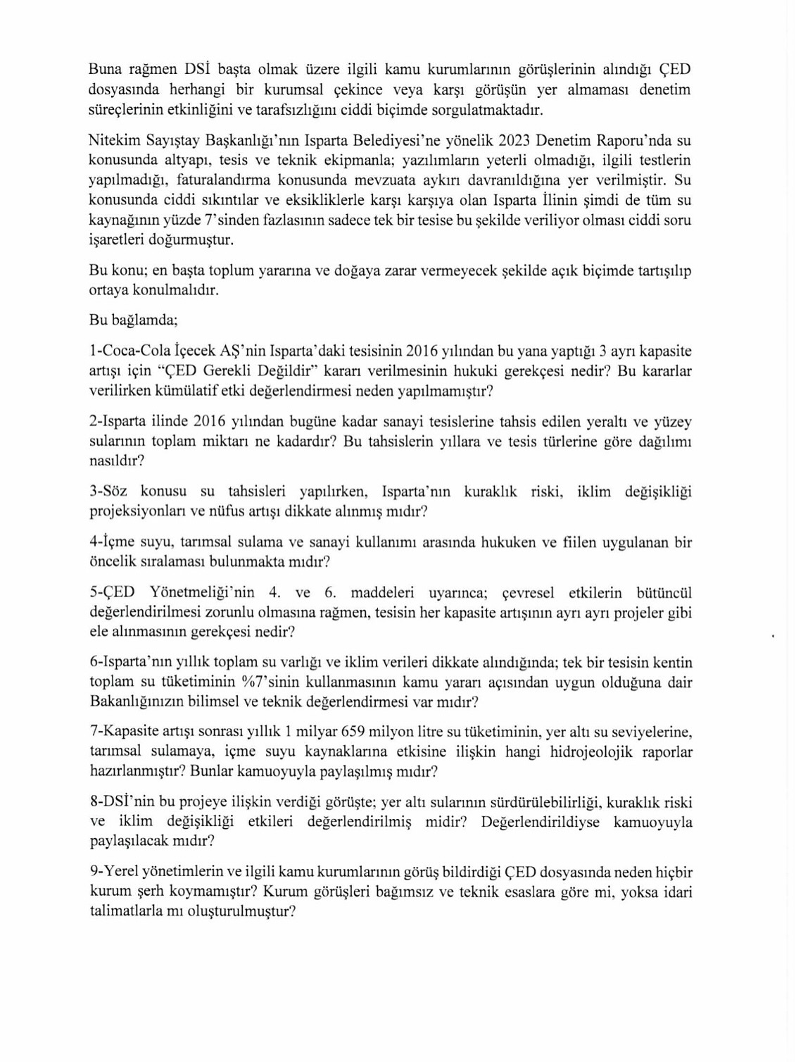 CHP’li Yalım Halıcı’dan Isparta’daki Coca-Cola Tesisine Tepki