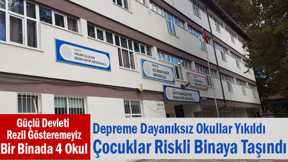 Isparta’da, depreme dayanıksız olduğu gerekçesiyle yıkılan bazı okul binalarının öğrencileri, geçici çözüm olarak eski bir okul binasında eğitimlerine devam ediyor. Edinilen bilgilere göre, çocukların toplandığı binanın da güvenlik açısından risk taşıdığı aktarıldı.