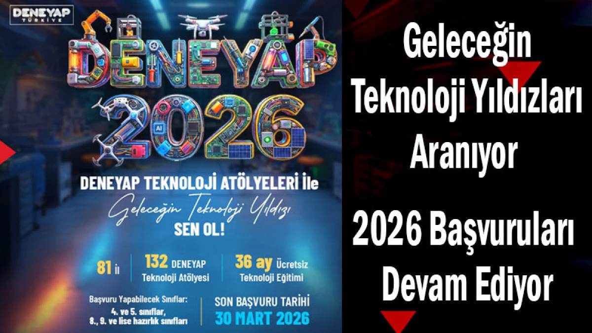 Türkiye’nin Milli Teknoloji Hamlesi vizyonuyla şekillenen ve T.C. Sanayi ve Teknoloji Bakanlığı, T.C. Gençlik ve Spor Bakanlığı, TÜBİTAK ve Türkiye Teknoloji Takımı Vakfı (T3 Vakfı) paydaşlığında yürütülen “DENEYAP Teknoloji Atölyeleri” kapsamında, teknolojiye tutkuyla bağlı, hayallerini üretime dönüştürmek isteyen gençler için 2026 Öğrenci Seçme Süreci başvuruları 30 Mart’a kadar devam ediyor.