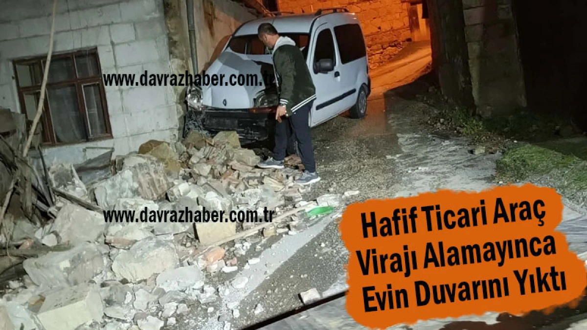 Hafif Ticari Araç Virajı Alamayınca Evin Duvarını Yıktı