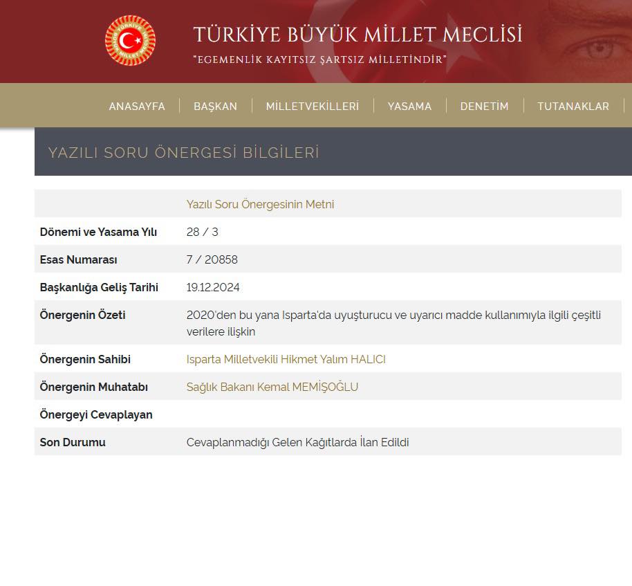 Halıcı açıklamasında, ''Madem uyuşturucu konusunda bu kadar hassaslar, iktidar neden uyuşturucu kullanımı ve ölümleriyle ilgili verdiğim önergeyi 1 yıldır yanıtla(ya)mıyor?
