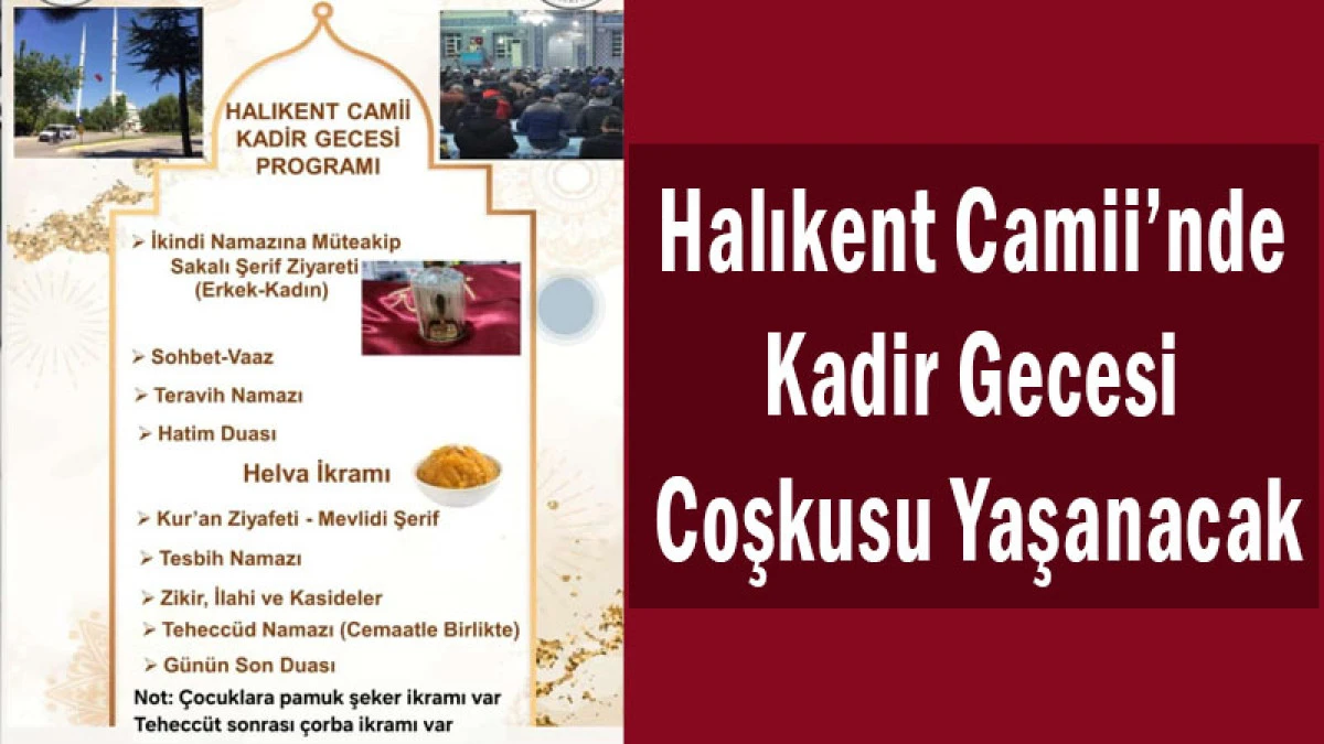 Halıkent Camii’nde Kadir Gecesi Coşkusu Yaşanacak