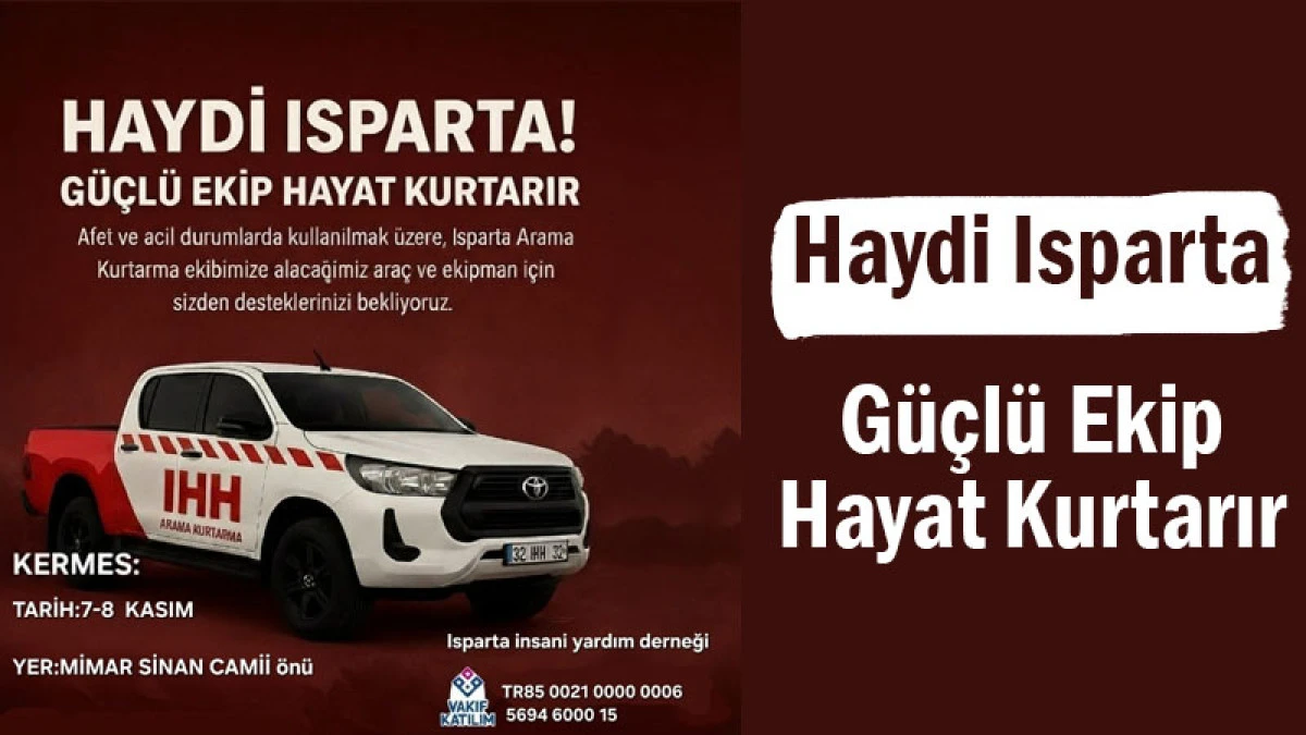 İnsani Yardım Derneği Isparta Şubesi (İHH), afet ve acil durumlarda kullanılmak üzere Isparta Arama Kurtarma Ekibi’ne araç ve ekipman temini için destek kampanyası başlattı.