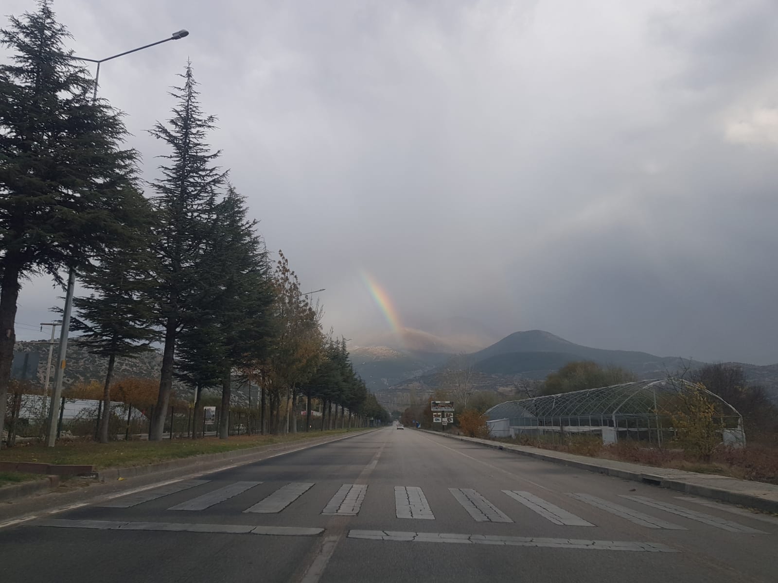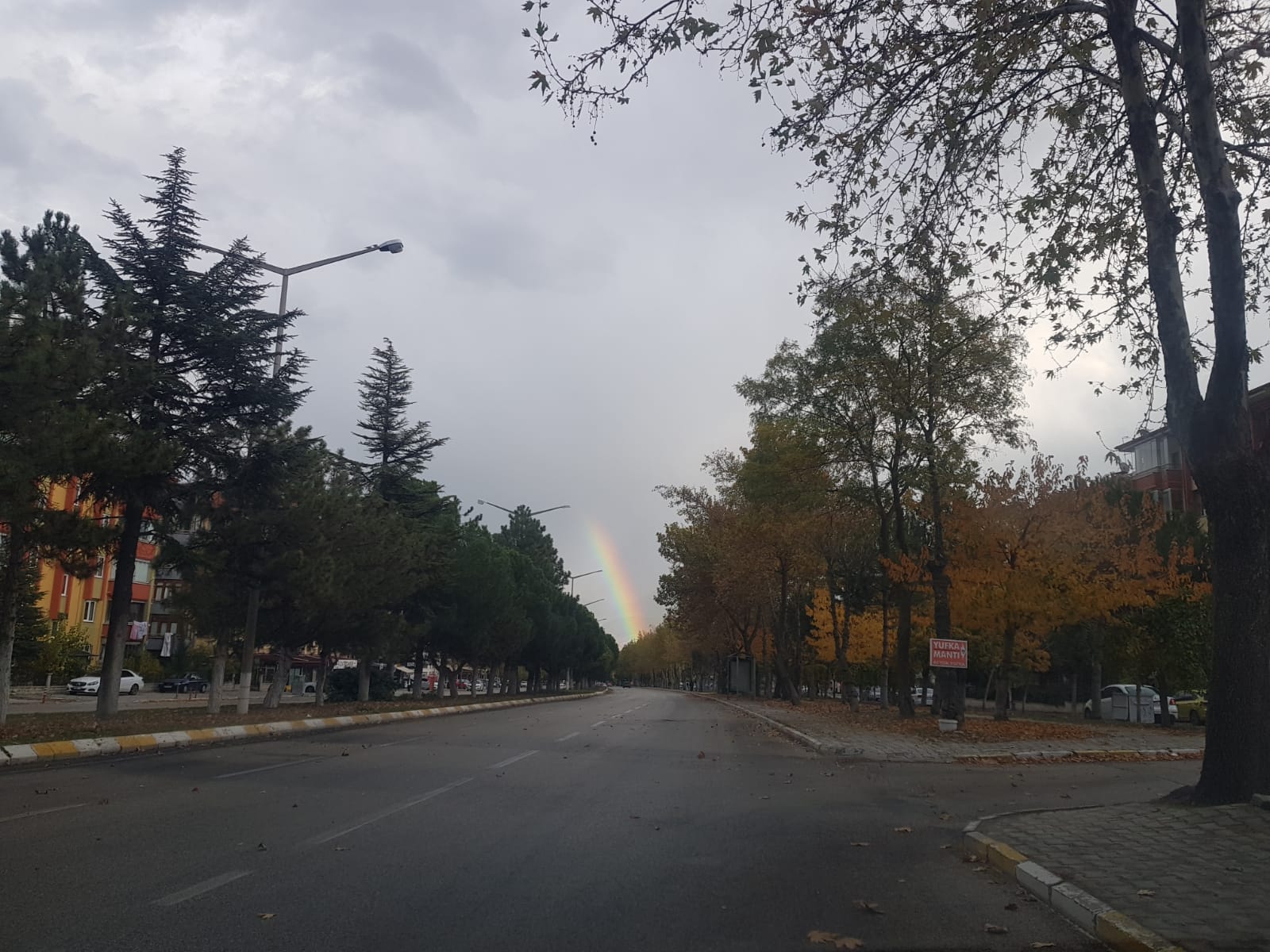 Ani yağışın ardından ortaya çıkan gökkuşağı, kısa süreliğine görsel bir şölen oluşturdu. Kentin birçok noktasından net şekilde görülen manzara, vatandaşların ilgisini çekti.