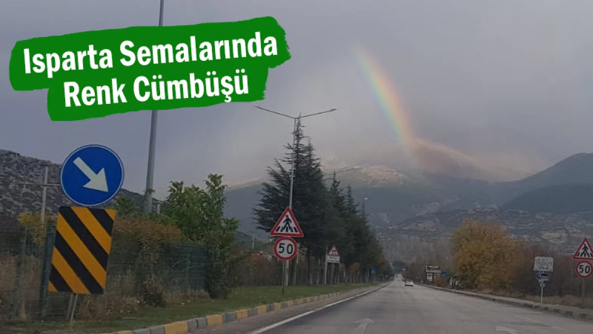 Isparta’da bugün saat 16.30 sıralarında gökyüzünde beliren gökkuşağı, şehre adeta renkli bir manzara kattı.