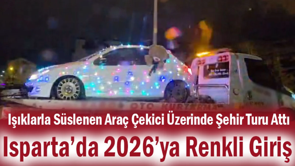 Isparta’da 2026 yılına girmenin coşkusu ilginç ve renkli görüntülere sahne oldu. Yeni yılı kutlamak isteyen bir vatandaş, yılın ilk saatlerinde aracını ışıklarla süsleyerek çekici üzerine yükledi ve şehir turu attı.