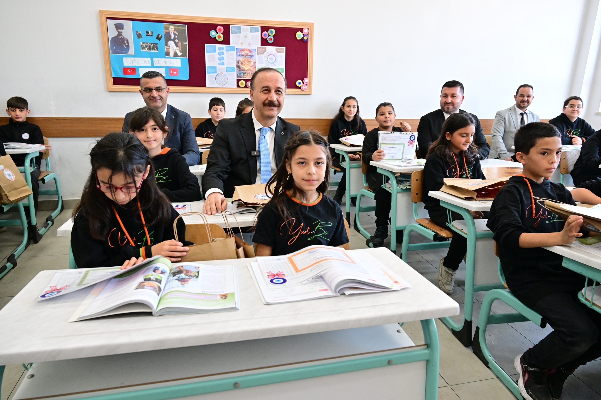 Vali Erin, Millî Eğitim Bakanlığı Mesleki ve Teknik Eğitim Genel Müdürü Salih Kaygusuz ile birlikte YURT-BİR Ortaokulu’nda öğrencilerin bu güzel heyecanına ortak oldu.