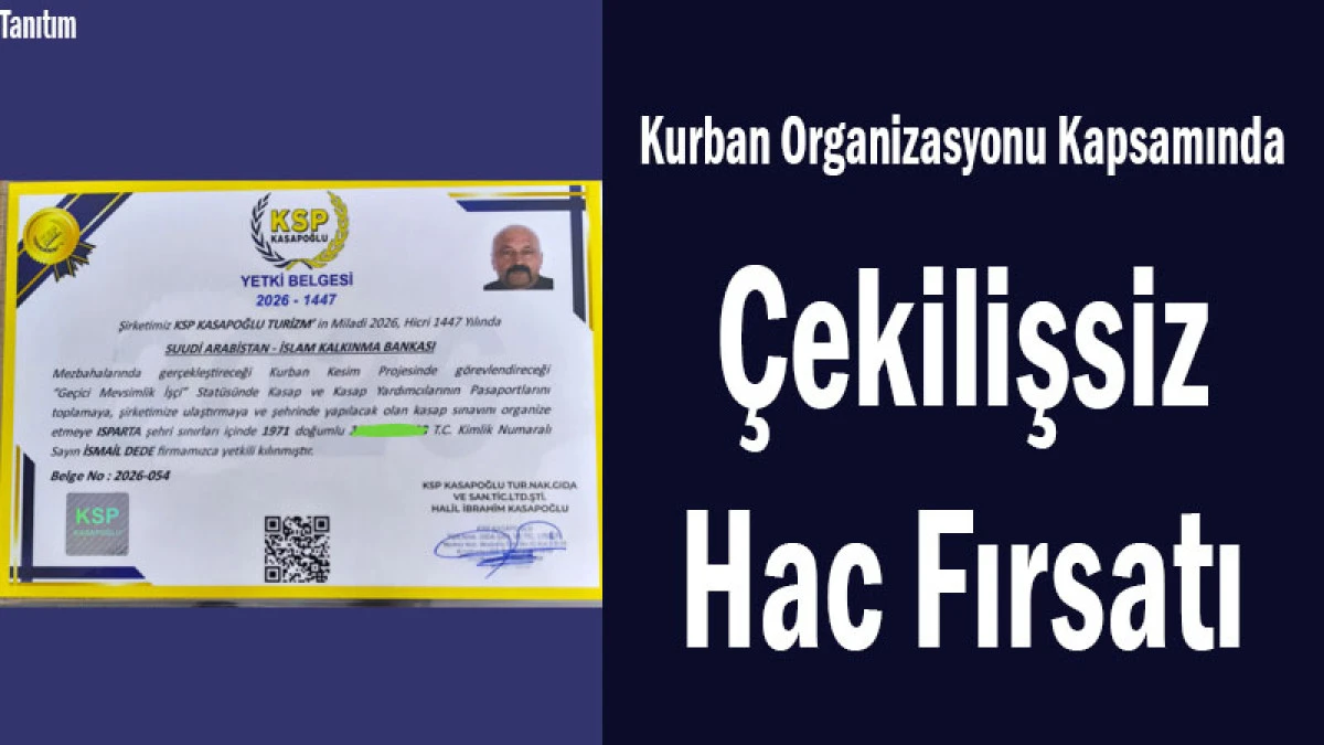 Isparta’da yürütülen organizasyon kapsamında, kasap ve kasap yardımcılarına yönelik hem uluslararası kurban kesim görevi hem de çekilişsiz, kurasız hac imkânı sunuluyor. Projenin, KSP Kasapoğlu Turizm ile İslam Kalkınma Bankası iş birliğinde yürütüldüğü belirtildi.