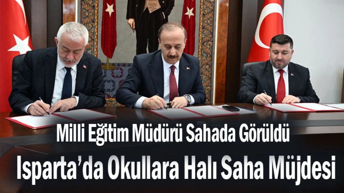Isparta’da eğitim ve spor alanında önemli bir adım atıldı. Vali Abdullah Erin, Başkan Şükrü Başdeğirmen ve Recai Ocak arasında okullara yapılacak halı sahalar için protokol imzalandı.