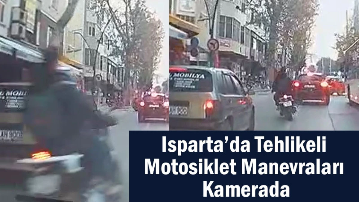 Isparta’da Cuma günü sabah saat 08.25 sıralarında 6 Mart Caddesi üzerinde seyir halindeki bir motosikletin trafiği tehlikeye atan manevraları araç kamerasına saniye saniye yansıdı.