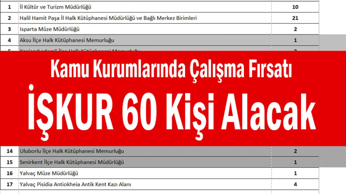 Kamu Kurumlarında Çalışma Fırsatı! İŞKUR 60 Kişi Alacak