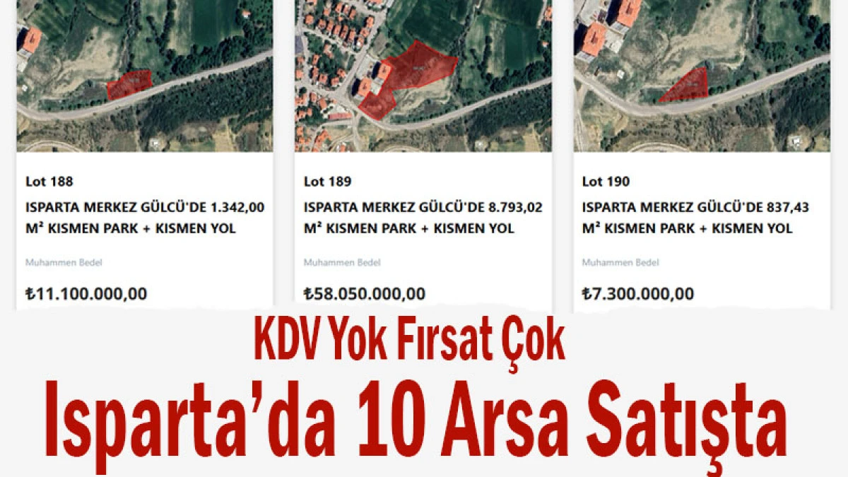 Yapılan duyuruya göre, Isparta merkezde bulunan 10 farklı arsa, 2 Nisan 2026 tarihinde satışa sunulacak.