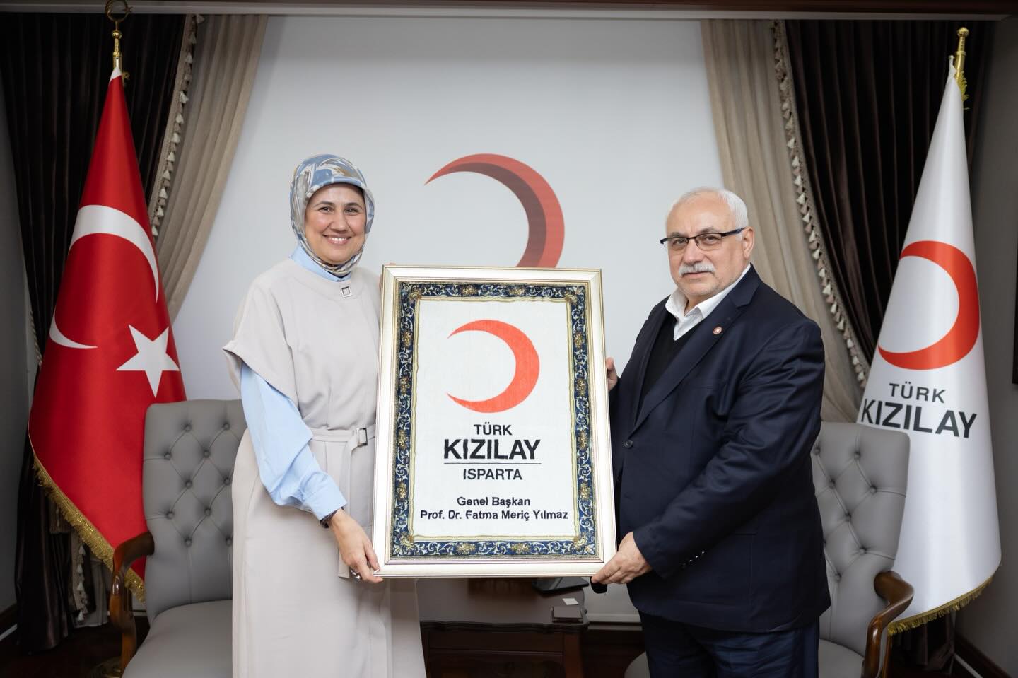 Kızılay Isparta İl Başkanı Ramazan Tamer Büyükküpçü ve yönetim kurulu üyeleri, Türk Kızılayı Genel Merkezi Genel Başkanı Prof. Dr. Fatma Meriç Yılmaz’ı ziyaret etti.