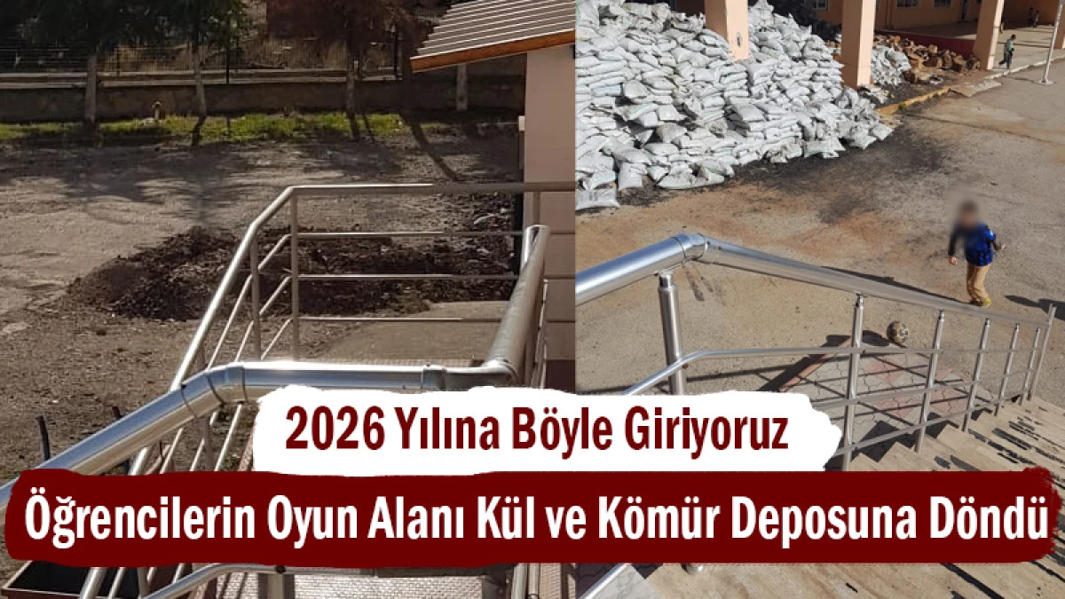 Bahçede çekilen görüntülerde, minik öğrencilerin oyun bölgesinde kül yığınları ve kömür torbaları var. Duruma tepki gösteren veliler, ''Çocuklarımız bu ortamda nasıl sağlıklı vakit geçirsin? Depreme dayanıksız diye okul yıkıldı ama yeni okulun akıbeti belli değil. Geçici denilen bu şartlar, çocuklar için risk oluşturuyor.'' diyerek yetkilileri göreve davet etti.