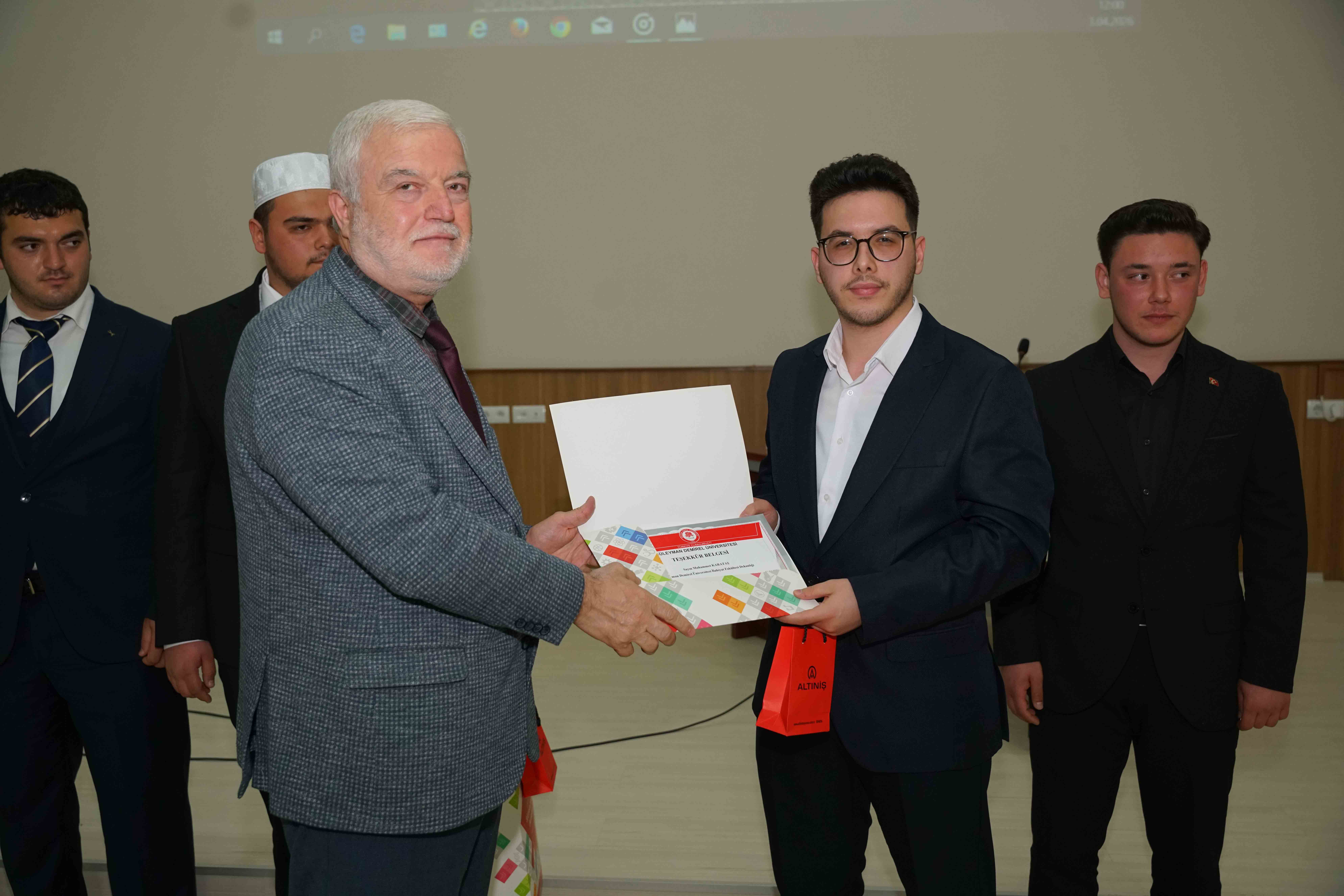 Öte yandan, 3 Nisan 2026 tarihinde, Süleyman Demirel Üniversitesinin ev sahipliğini yaptığı Kur'an-ı Kerim'i güzel okuma yarışmasında üniversitemizi temsil eden Muhammet KARATAŞ bölge 2. si oldu.