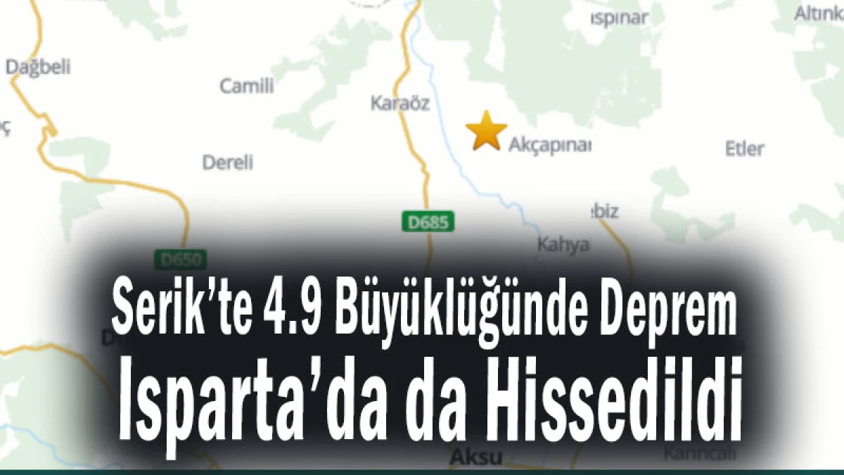 Serik’te 4.9 Büyüklüğünde Deprem! Isparta’da da Hissedildi