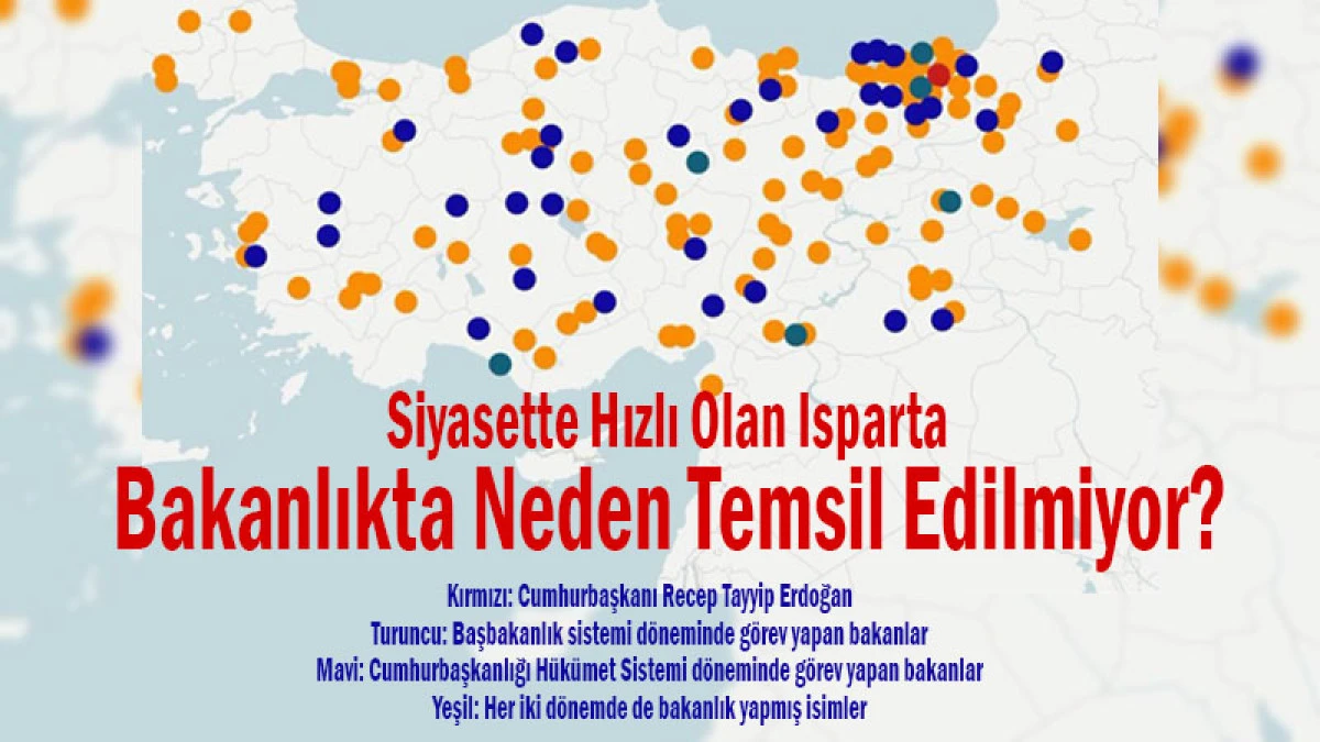AK Parti döneminde görev yapan bakanların memleketlerine göre hazırlanan kabinenin coğrafya dağılımı haritasında Isparta’nın yer almaması, kentte yeni bir tartışmayı da beraberinde getirdi.
